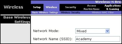 Все беспроводные устройства, подключенные к данной точке доступа, должны иметь присвоенный SSID Академии.