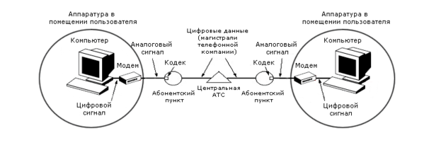 Рисунок 2-34. Передача цифровых данных по телефонной сети