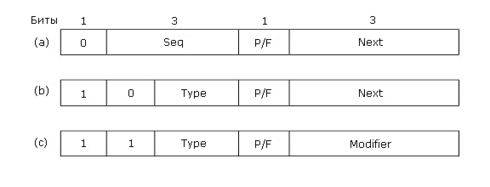 Рисунок 3-17. Поле Control для кадров: Information (a), Supervisory (b), Unnumbered (c)