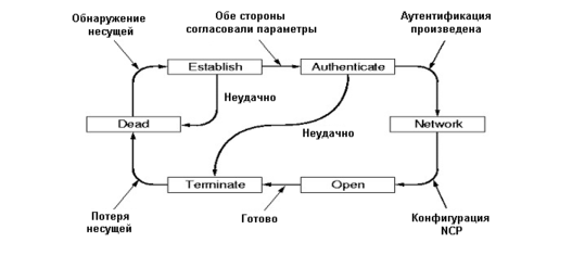 Рассмотрим типичный сценарий, когда пользователь из дома по телефонной линии хочет подключить свой PC к Интернету. РС звонит на маршрутизатор сервис-провайдера. После того как маршрутизатор принял звонок и установил физическое соединение, РС посылает несколько LCP-пакетов в РРР-кадрах. Маршрутизатор отвечает LCP-пакетами в РРР-кадрах. В результате такого обмена определяются параметры соединения.