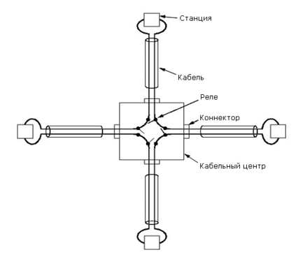 Вместо станции к кабельному центру может присоединяться другой кабельный центр. Таким образом, кабельные центры могут объединяться в структуры, подобно тому как хабы соединяются в 802.3. Однако форматы и протоколы у них разные.