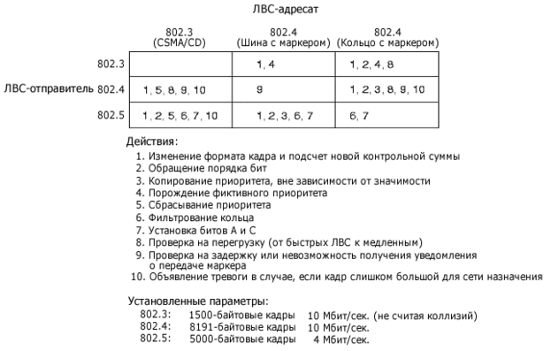 Здесь две проблемы. Первая - кадры из 802.4 содержат биты приоритета, а в кадрах 802.3 таких нет. В результате, если две 802.4 взаимодействуют через 802.3, то информация о приоритетах будет уничтожена.