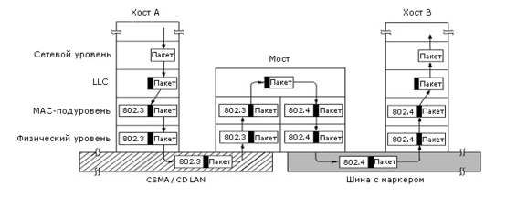 Рисунок 4-31. Двухпортовый мост между 802.3 и 802.4