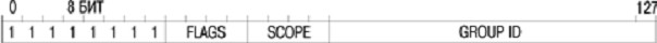 Широковещательный адрес благодаря использованию полей Flags и Scope может также использоваться более гибко. В четырехбитном поле Flags пока используется только младший бит для указания, является ли данный адрес постоянным и выделенным соответствующими организациями, ответственными за выдачу адресов, или используется единовременно. Поле Scope используется для ограничения области распространения широковещательных пакетов. Значения этого поля приведены в таблице 2.