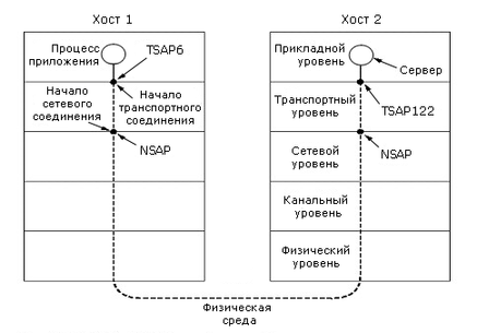 Из этой иллюстрации не ясно лишь, как прикладной процесс на машине 1 узнает, что интересующий его сервер подключен к ТSAP 122 на машине 2? Одно из возможных решений - если данный сервер всегда подключен к ТSAP 122, и все процессы об этом знают.
