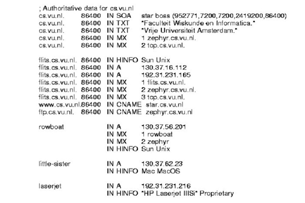 Рисунок 7-27. Фрагмент возможной базы DNS для cs.vu.nl