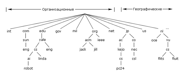 Рисунок 7.25. Часть пространства доменных имен в Интернете