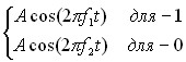 При частотной модуляции двоичные 0 и 1 представляют сигналами разной частоты, сдвинутой, как правило, по отношению к частоте несущей на одинаковую величину, но в противоположном направлении:
