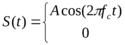 В случае амплитудной модуляции двоичные 0 и 1 представлены аналоговым сигналом на частоте несущей, но разной амплитуды. Обычно 0 соответствует сигнал с нулевой амплитудой. Таким образом, при амплитудной модуляции сигнал S(t) имеет вид: