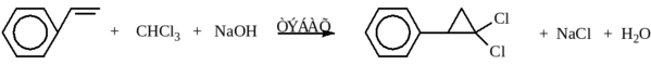 1,1-дихлор-2-фенилциклопропана был получен из стирола по следующей схеме: