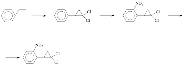 Для получения 1,1-дихлор-2-(2-аминофенил)циклопропана мы провели трехстадийный синтез:
