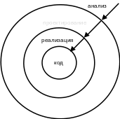 В целях борьбы со сложностью система создается на различных уровнях детализации (абстракции): уровне анализа, уровне проектирования, уровне реализации и самом подробном – уровне кода.