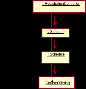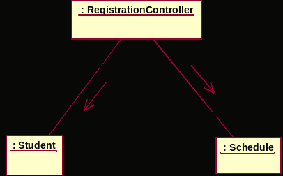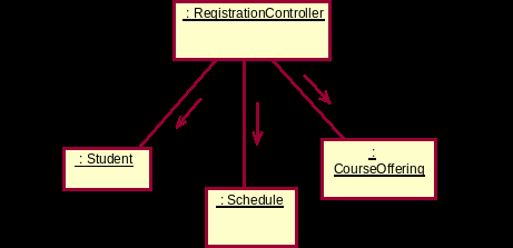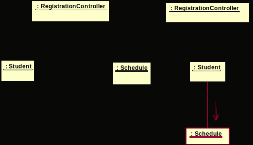 Пример: Рассмотрим подчиненный поток событий "Создать график" варианта использования "Зарегистрироваться на курсы" (предыдущий рисунок). Согласно образцу "Low Coupling", наилучшим решением является вариант справа, поскольку при этом у класса RegistrationController будет на одну связь меньше (т.е., будет обеспечена более низкая связанность).