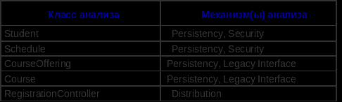 В описания классов, сопоставленных с архитектурными механизмами, добавляются дополнительные характеристики, например: