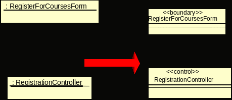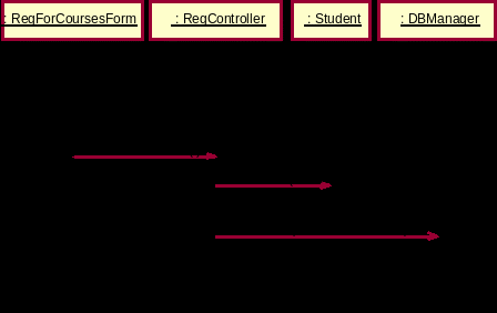 ример: При выполнении подчиненного потока событий "Создать график" варианта использования "Зарегистрироваться на курсы" необходимо решить, кто должен отвечать за создание нового графика в системе. На рис. показаны два возможных варианта решения этой задачи.