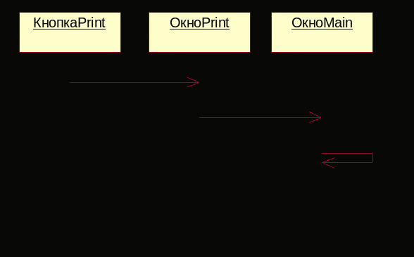 иаграмма кооперации, демонстрирующая цепочку объектов, задействованных при печати: