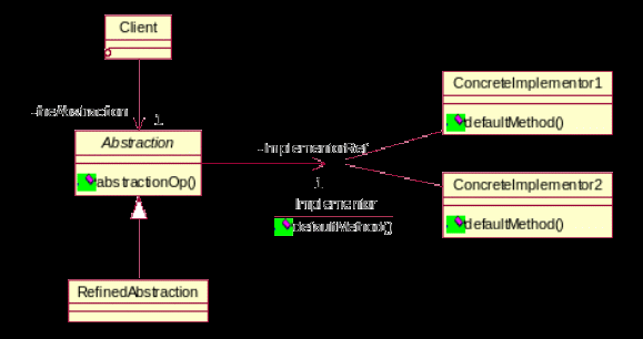 Абстракция перенаправляет запросы клиента одной из реализаций Implementora.