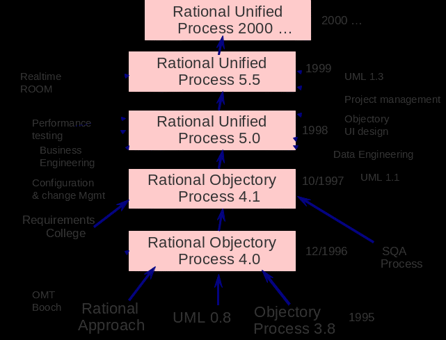 UP является развитием процесса разработки, принятого в компании Ericsson в 70-х–80-х годах XX века. Эта модель была создана Джекобсоном (Ivar Jacobson), впоследствии, в 1987, основавшим собственную компанию Objectory AB именно для развития технологического процесса разработки ПО как отдельного продукта, который можно было бы переносить в другие организации. После вливания Objectory в Rational в 1995 разработки Джекобсона были интегрированы с работами Ройса (Walker Royce), Крачтена (Philippe Kruchten) и Буча (Grady Booch), а также с развивавшимся параллельно универсальным языком моделирования (Unified Modeling Language, UML).
