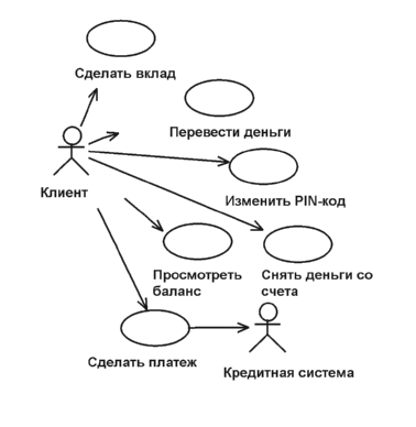 связи расширения (пунктирная линия со стрелкой, соединяющая вариант – особый случай – с базовым вариантом использования);