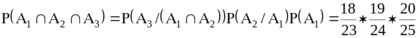 3.1 Студент пришёл на экзамен, зная лишь 20 из 25 вопросов программы. Экзаменатор задал студенту 3 вопроса. Используя понятие условной вероятности найти вероятность того, что студент знает все вопросы. Найти ту же вероятность, используя классическое определение вероятности.