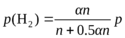 n – αn + αn + 0.5αn = n + 0.5αn моль веществ. Тогда парциальные давления участников реакции составляют: