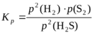 Пример 6. При температуре 1103 К и давлении 101.3 кПа степень диссоциации сероводорода по уравнению 2H2S(г) ⇄ 2H2(г) + S2(г) равна 8.7%. Рассчитайте значения Кр и Кс.