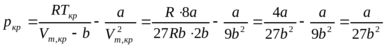 Подставив найденные критические температуру и мольный объем в исходное уравнение Ван-дер-Ваальса, определяем критическое давление: