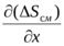 Величина энтропии смешения составляет ΔSсм = –R((1 – x)ln(1 – x) + xlnx). Чтобы найти максимум этой функции, продифференцируем ее по х: