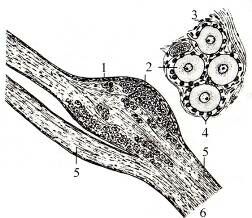 5 – эндоневрий, 6 – нервные волокна,