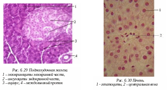 ассмотрите и изучите демонстрационные препараты «Поджелудочная железа» и «Печень человека», сделайте рисунки, отражающие особенности гистологического строения печени и поджелудочной железы