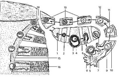 14 – морула, 15 – гаструляция, 16 – инвагинация гаструлы в эндометрий матки