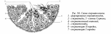 | Сперматоген- ные клетки | Размножение | Рост | Созревание | Формирование |