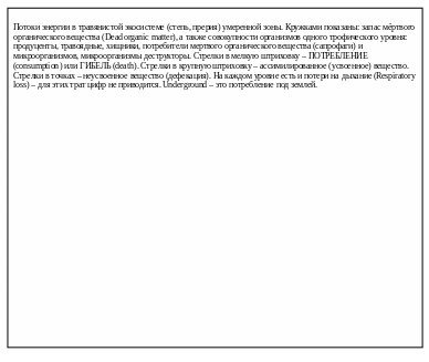 Важные диаграммы потока энергии в трех типах экосистем: пелагиали озера, лесу умеренной зоны и степи (грасслэнды – степи, прерии, большие луга). Три этих рисунка взяты из очень хорошей статьи отца и сына Хейрстонов: Cause-Effect Relationships in Energy Flow, Trophic Structure, and Interspecific Interactions Nelson G. Hairston, Jr.; Nelson G. Hairston, Sr. The American Naturalist, Vol. 142, No. 3. (Sep., 1993), pp. 379-411. PDF всей статьи у меня имеется. Могу послать желающим. Где-то он был в свободном доступе в сети, но сейчас не могу найти.
