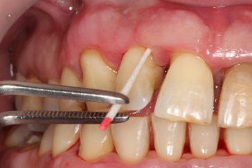 Рисунок 2. Забор содержимого пародонтального кармана у пациента с ХГП.