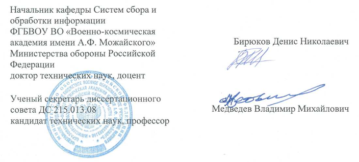 Место основной работы и занимаемая должность: федеральное государственное бюджетное военное образовательное учреждение высшего образования «Военно-космическая академия имени А.Ф. Можайского» Министерства обороны Российской Федерации, кафедра Систем сбора и обработки информации, начальник кафедры.