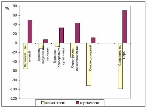 Рисунок 3 – Приведенная буферная емкость некоторых типов почв (П.П. Надточий, 1993) и карбонатного сапропеля озера Неро