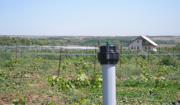 Рисунок 22. Комбинированный дождеватель при поливе молодого виноградника в режиме струйного дождевания