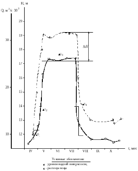 | Рис. 4. Графики функций H = fH(t) и Q = fQ(t) для характерного 1979 г. |