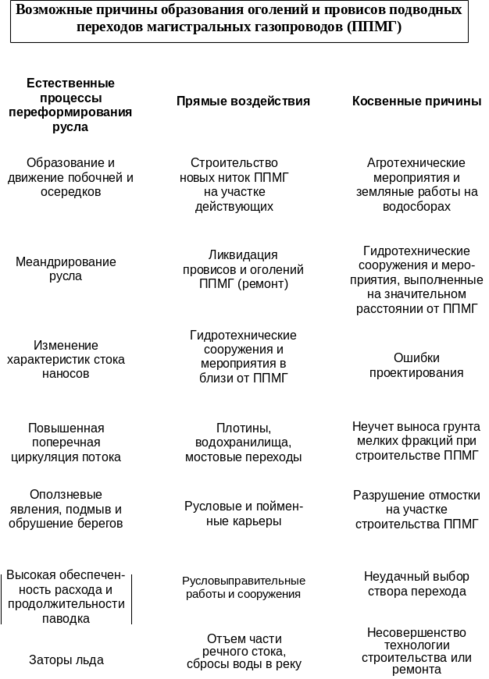 | Таблица 1. Классификация причин негативного развития русловых процессов на участках подводных переходов магистральных газопроводов (ППМГ) |