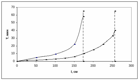 Рисунок - 4. Время добегания струи воды при расходе 3,6 л/ч