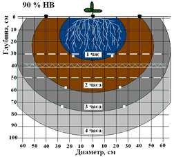 А3 – поддержание предполивного порога влажности почвы в течение всего вегетационного периода на уровне 90 % НВ в слое 0,5 м.