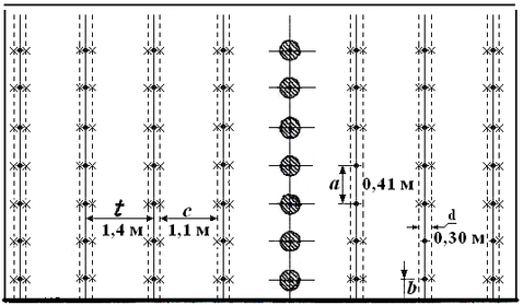 d – расстояние между ближайшими рядками растений на капельной линии;