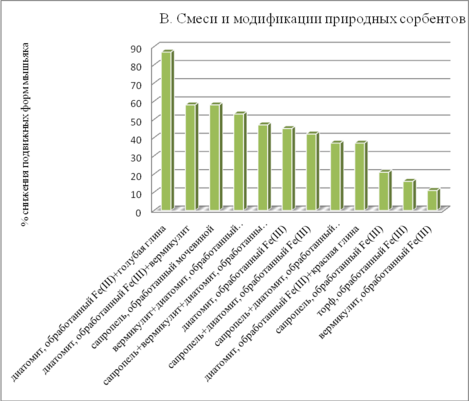 Рисунок 3 - Ряд поглощения подвижных форм мышьяка смесями и модификациями природных сорбентов