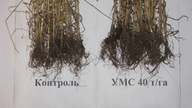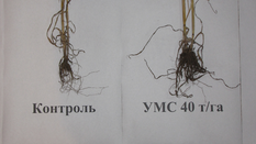В 2012 году были выполнены наблюдения за развитием корневой части растений (рис 2). Наиболее мощная корневая система сформировалась в варианте с внесением УМС дозой 40 т/га – 8,99 т/га. В контрольном варианте масса корневой системы составила 3,81 т/га или в 2,4 раза меньше. Таким образом, можно сделать вывод, что применение удобрительно-мелиорирующей смеси способствует более интенсивному накоплению в почве свежего органического материала, а, следовательно, возможности образования гумуса и повышения плодородия почвы.