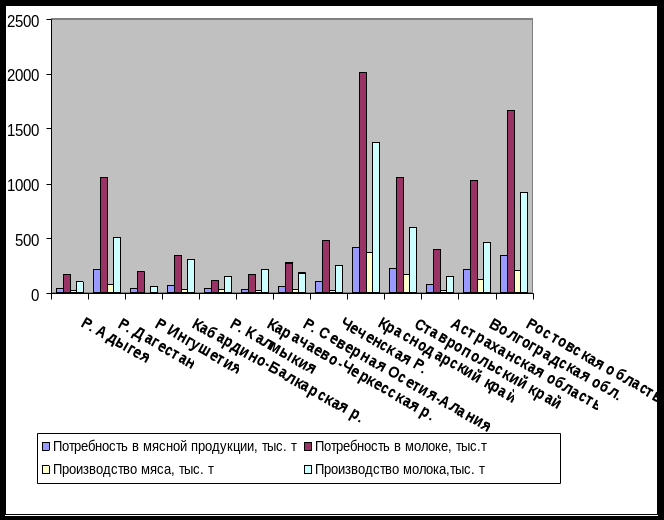 Рисунок 4. –Потребность населения ЮФО в продукции животноводства.