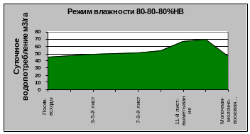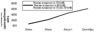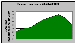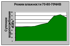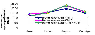 При всех режимах влажности почвы наибольшие значения водопотребления отмечены в августе, наименьшие - в начале вегетации (июнь), так как в этот период влага расходуется на физическое испарение при незначительной транспирации растений (рис.2 и 3).