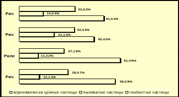 Таким образом, норма высева (густота стояния культурных растений) может быть весьма эффективным приемом подавления сорных растений рисовых полей: при увеличении густоты посева в 1,5…2,0 раза доля сорняков в посевах снижается в 1,45…2,37 раза. Это может быть объяснено тем, что растения рапса выделяют физиологически активные соединения, переходящие в почвенный раствор, и оказывают определенное аллелопатическое воздействие на сорняки.