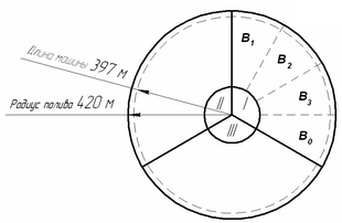 Площадь учетной делянки составляла 0,015 га. В исследованиях был использован районированный сорт моркови НИИОХ 336. Полив проводился дождевальной машиной кругового действия “Кубань ЛК-1”(рисунок 1).