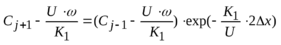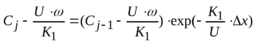 , начиная с координаты x0. Непрерывную переменную x заменим на дискретную, а именно - нижний индекс j, обозначающий номер створа, в котором производилось измерение концентрации ЗВ (j=1,2,…, N, где N – число наблюдаемых створов). Координата j –го створа определяется соотношением