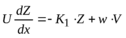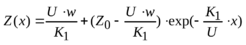 где x - расстояние по длине русла от начального створа, м; Z- поток (расход массы) ЗВ через поперечное сечение русла, г/с; U- скорость переноса ЗВ, м/с;
